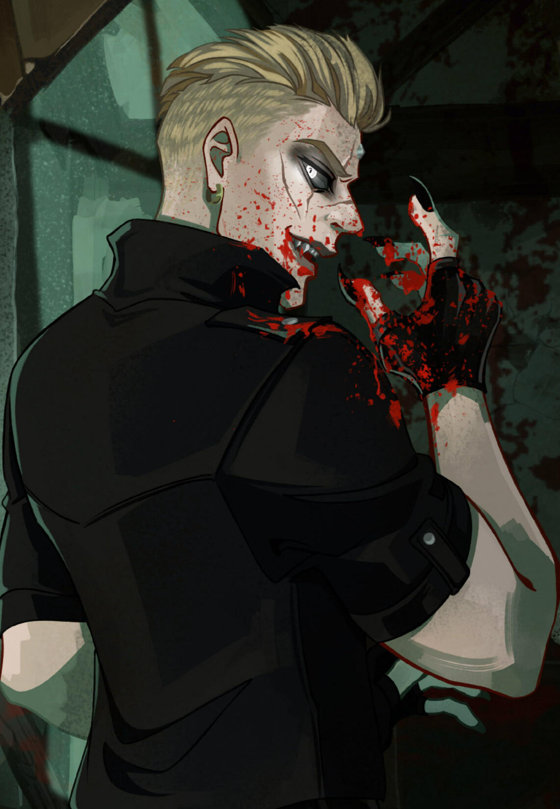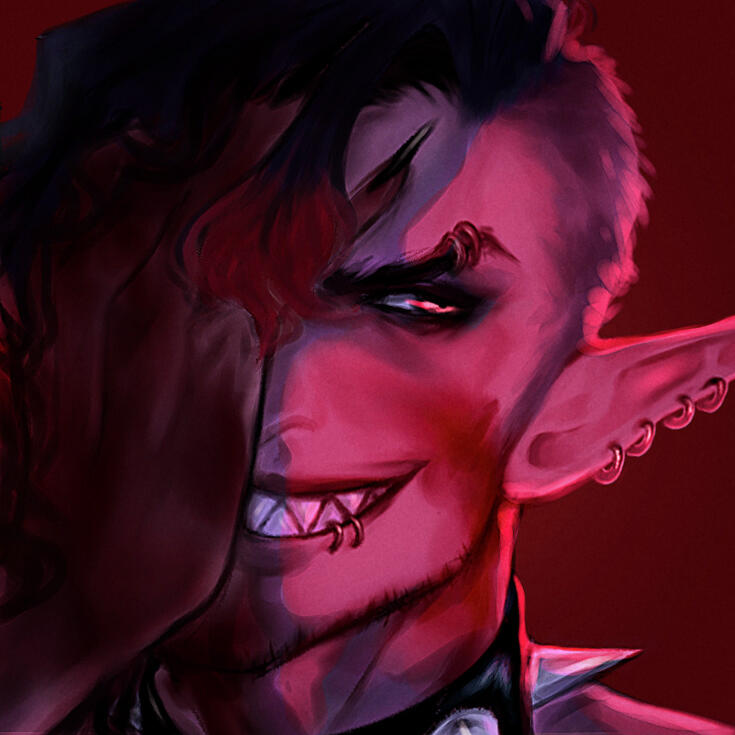 TLDR on his species; Basically, because he regularly consumes flesh, he doesn't decay at all. He's functionally alive(minus the body heat), but with the benefit of the super strength and endurance of an Ashkin. Please note this will not be used to auto-win battles or anything! It's just how his species works. He has retractable metal fangs to consume flesh more easily (given he's, well, an Ashkin.) Do not worry - he will not bite without permission (unless you're an enemy, in which case, good luck :) ) His scent is similar to if he were to work at a cereleum plant. This can be masked mostly when wearing cologne.Level 4: Voice Claim 💀