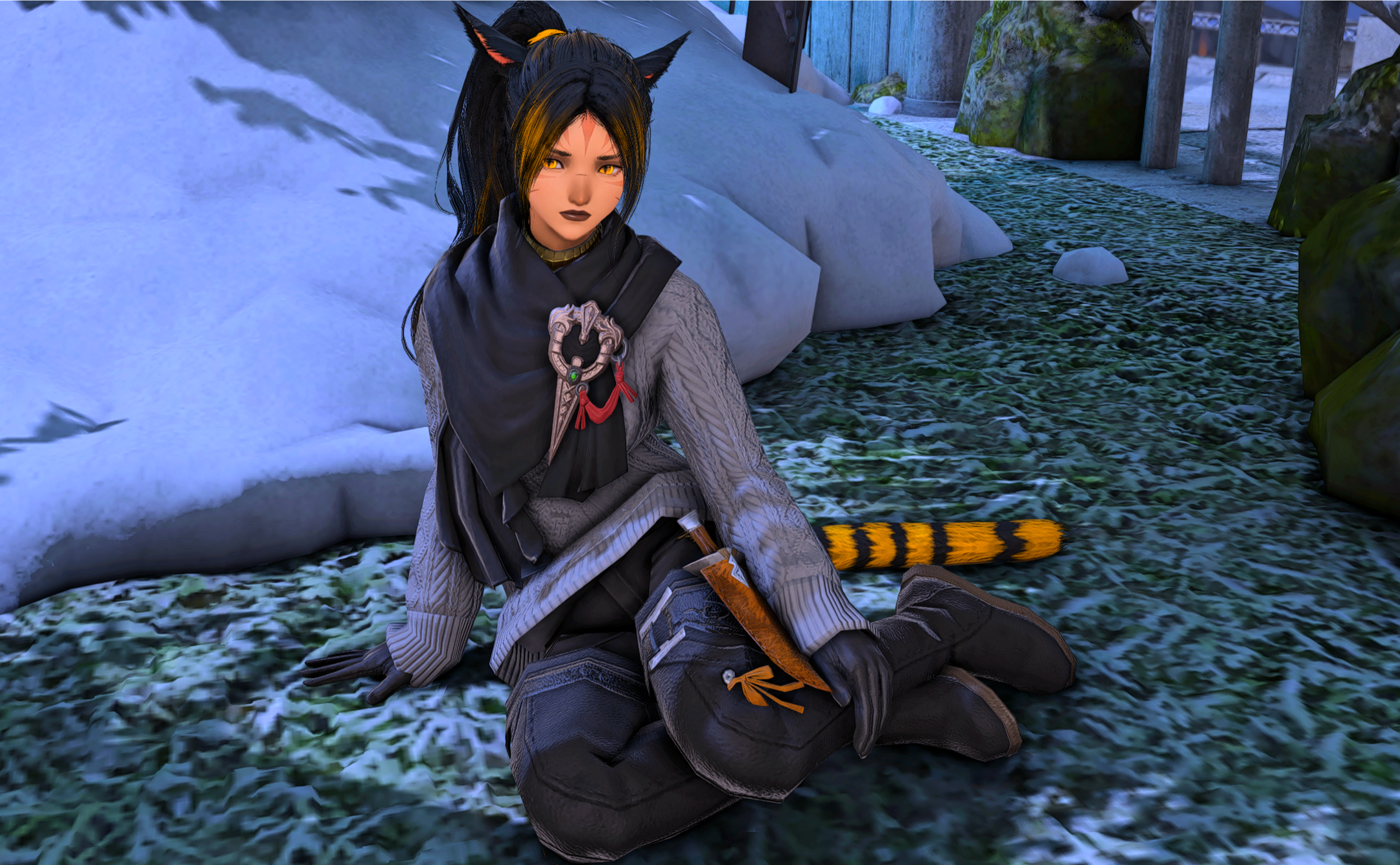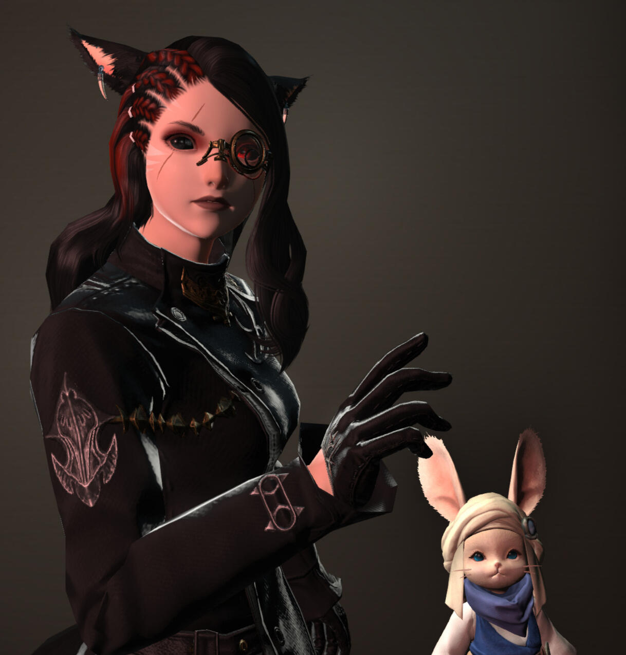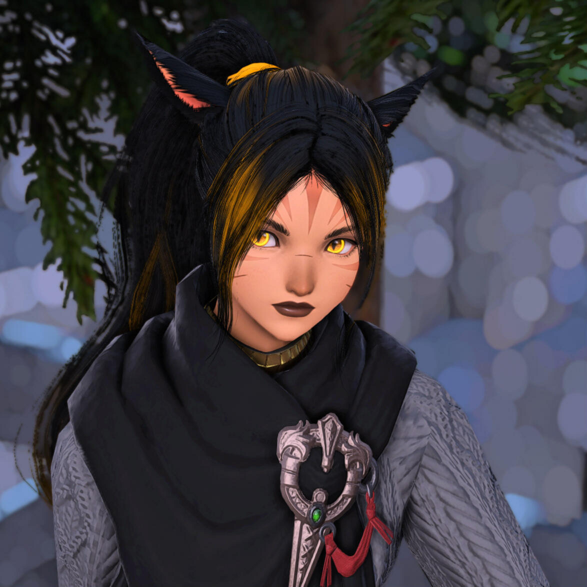 In the forests of Eorzea, a small family of Miq’ote branched off from the Keepers of the Moon Clans, exploring further into areas like Gridania. They respected the rules of the Trapper’s League, and at times went to Gridania for the purpose of trading furs and gathered flora. The family settled for a small swath of territory in eastern Black Shroud. Fa’llynn hailed from this family, generally brought up to be more secluded. Though it was uncommon, her father did remain with her siblings and her, protecting and raising the family. He never accompanied them to Gridania, however, when they engaged in trading.Fa’llynn herself rarely was brought to the city, however she had an unusually strong sense of curiosity. Unlike others around her, she seeked to meet and interact with other races. However, her upbringing rendered her fairly shy, so she watched from a distance and learned about them from books.Things took a turn for the worst when her family had an altercation with a hunting item. Their location unfortunately rendered them close enough to the wall between the Shroud and Gyr Abania. On that fateful night, her parents ran into some Garleans, who cut them down after declaring them ‘savages’. The winter had been particularly difficult, and her family meant to protect the kill. Little did they know, it would cost them their lives. Fa’llynn and her siblings found their battered bodies with heavy burns and lacerations from magiteck blades.Now teenagers, Fa’llynn (the eldest of them) and her siblings scattered throughout the Shroud, none truly sticking together. They were thrown into chaos, Falls herself spiraling into a deep hatred/sadness. She developed a deep sense of mistrust for strangers, though retained the knowledge on trading from her parents’ example. Therefore, she still traveled to Gridania to trade, but never spoke much. The spark of curiosity never went out within her, but she never looked into it.Fa’llynn relocated to the northwest, where the climate was a bit colder due to the winds of Coerthas. Adapting well enough with her hunting skills, and still following the guidelines of Trapper’s League, she established herself and coldly watched anyone who happened to enter her territory. Unless someone detected and called her out, she tended to remain hidden. Should this stalking be called out, she would coldly give directions to Gridania and warn them against hunting in her territory not only to avoid conflict with her, but the Trapper’s League.Current Day