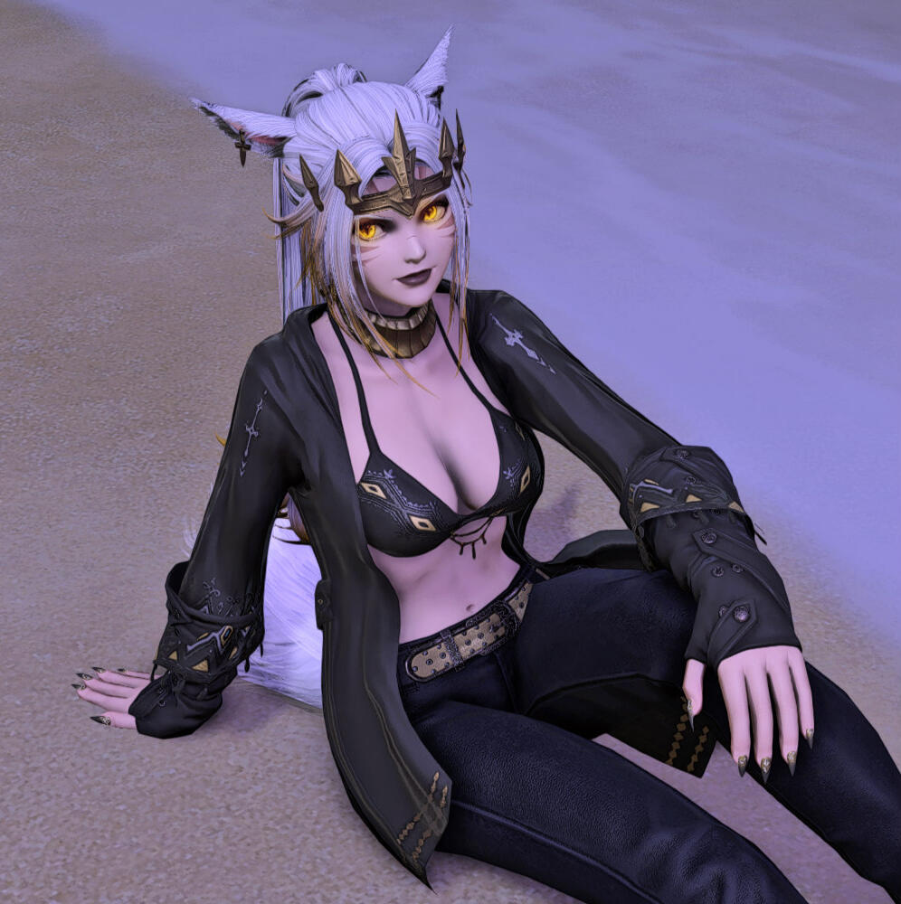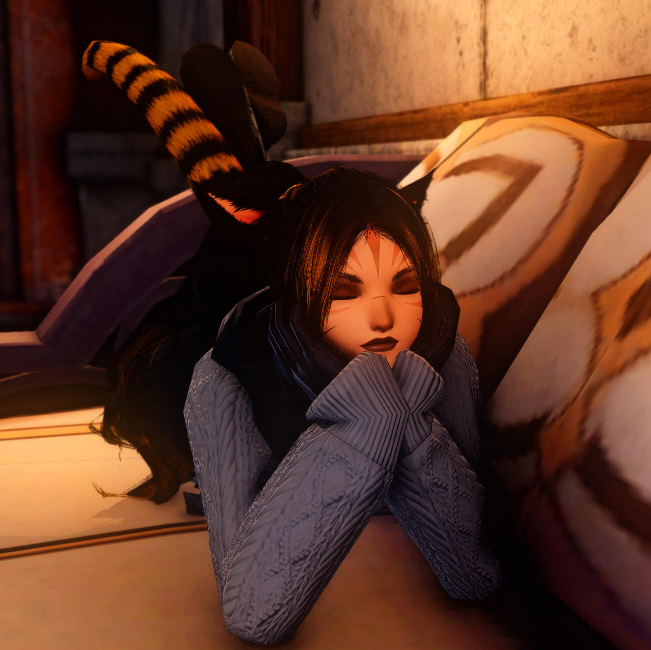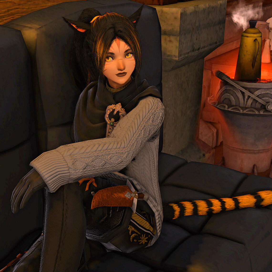 In the forests of Eorzea, a small family of Miq’ote branched off from the Keepers of the Moon Clans, exploring further into areas like Gridania. They respected the rules of the Trapper’s League, and at times went to Gridania for the purpose of trading furs and gathered flora. The family settled for a small swath of territory in eastern Black Shroud. Fa’llynn hailed from this family, generally brought up to be more secluded. Though it was uncommon, her father did remain with her siblings and her, protecting and raising the family. He never accompanied them to Gridania, however, when they engaged in trading.Fa’llynn herself rarely was brought to the city, however she had an unusually strong sense of curiosity. Unlike others around her, she seeked to meet and interact with other races. However, her upbringing rendered her fairly shy, so she watched from a distance and learned about them from books.Things took a turn for the worst when her family had an altercation with a hunting item. Their location unfortunately rendered them close enough to the wall between the Shroud and Gyr Abania. On that fateful night, her parents ran into some Garleans, who cut them down after declaring them ‘savages’. The winter had been particularly difficult, and her family meant to protect the kill. Little did they know, it would cost them their lives. Fa’llynn and her siblings found their battered bodies with heavy burns and lacerations from magiteck blades.Now teenagers, Fa’llynn (the eldest of them) and her siblings scattered throughout the Shroud, none truly sticking together. They were thrown into chaos, Falls herself spiraling into a deep hatred/sadness. She developed a deep sense of mistrust for strangers, though retained the knowledge on trading from her parents’ example. Therefore, she still traveled to Gridania to trade, but never spoke much. The spark of curiosity never went out within her, but she never looked into it.Fa’llynn relocated to the northwest, where the climate was a bit colder due to the winds of Coerthas. Adapting well enough with her hunting skills, and still following the guidelines of Trapper’s League, she established herself and coldly watched anyone who happened to enter her territory. Unless someone detected and called her out, she tended to remain hidden. Should this stalking be called out, she would coldly give directions to Gridania and warn them against hunting in her territory not only to avoid conflict with her, but the Trapper’s League.Current Day