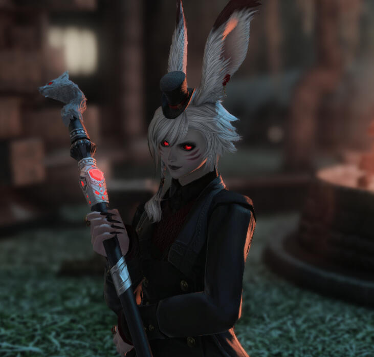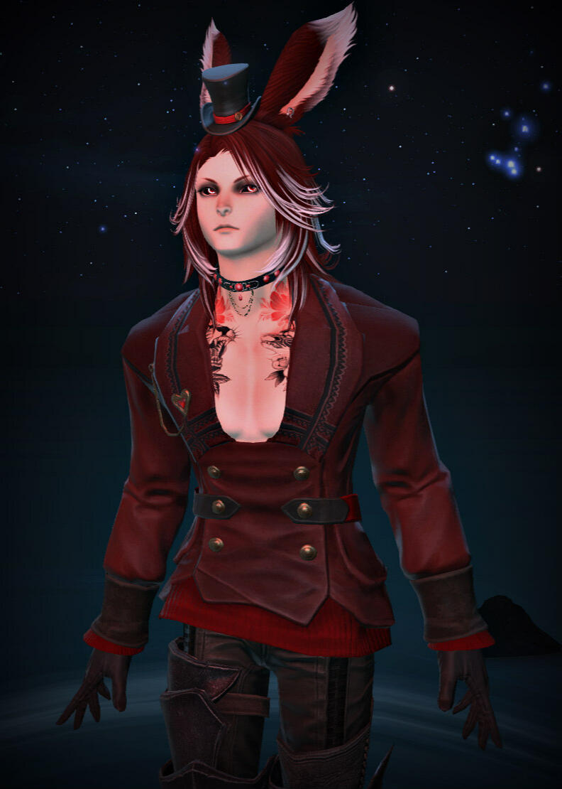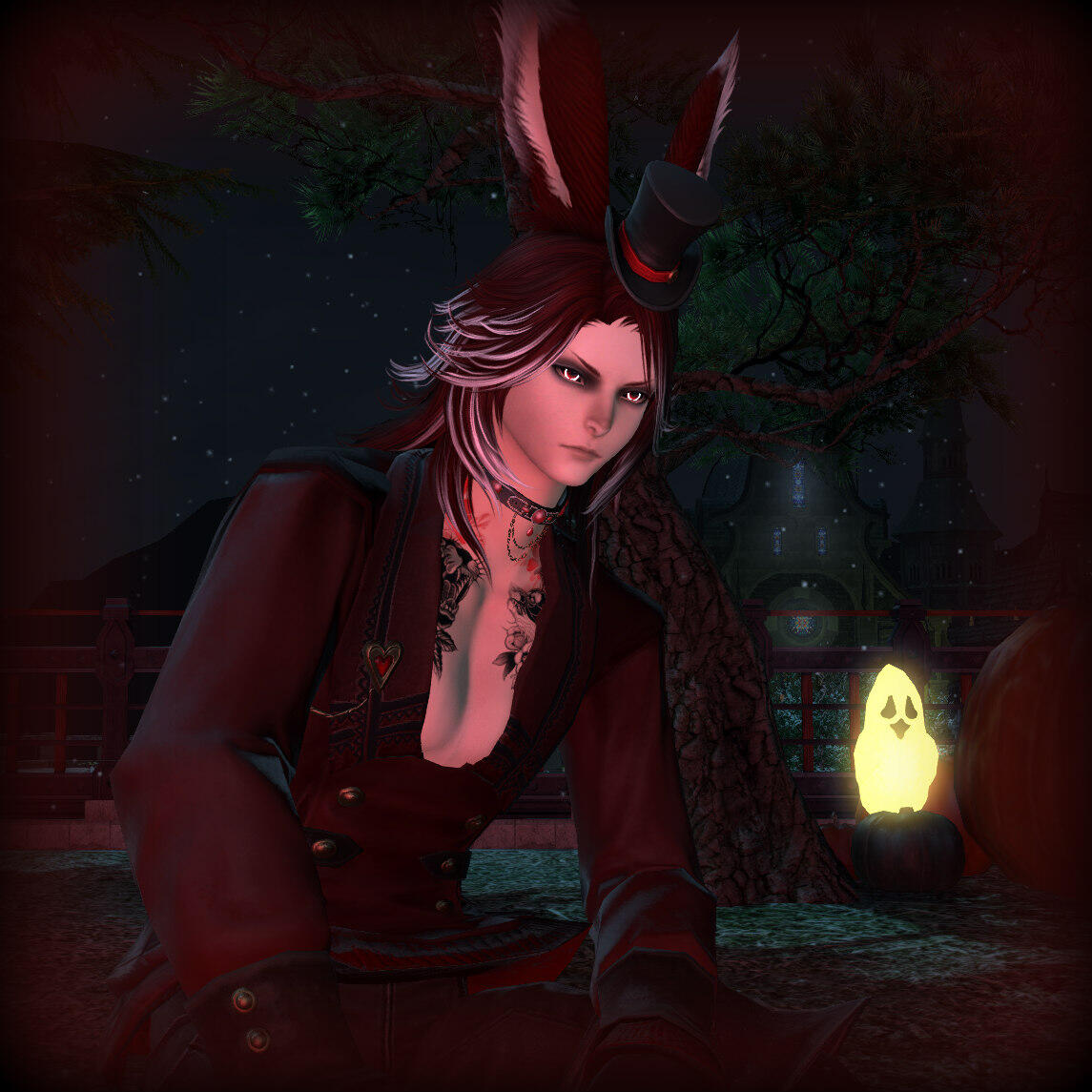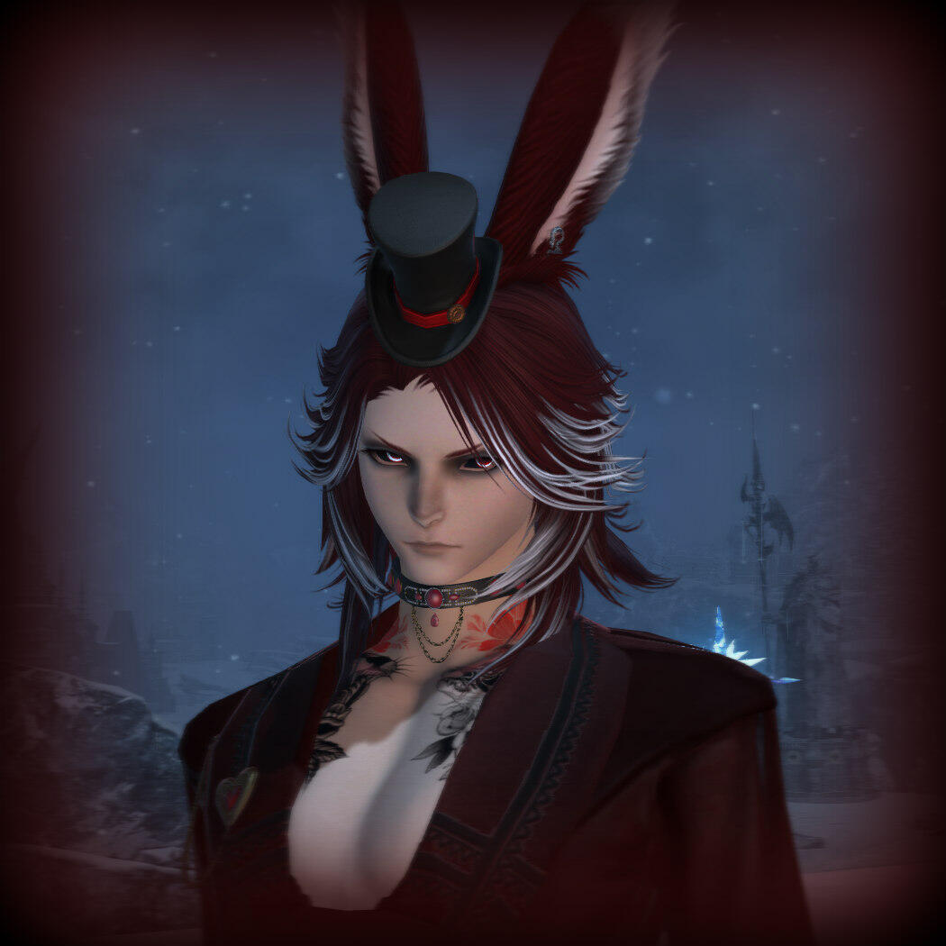 He was born in a secluded village and admittedly has no interest in returning, nor thinking too much on said village.He was born... odd. Beyond being a rare sight, given male viera, he had glowing red eyes with an unnatural ring that glowed like the full moon.His teeth were also...off. All of them as sharp as knives, and this hinted at his peculiar diet.Being fed beastkin blood sustained him for a short while, but eventually he had cravings for his fellows. Being a responsible and bright soul, he resisted this until snapping one day.He's certain he didn't cause a fatal blow to his fellow, but knows that they barely survived. He ran off into the woods after this incident - at the time, he'd been a teenager.Unsure of what to do, he was contacted by none other than his sister... a glowing white viera named Rook. She attempted to lure him to her laboratory, but was intercepted by a different sister - Winter.Confused and generally dazed, Spring lashed out at both and fled. On the run from both for a while, he managed to sustain himself from the shadows, inching closer and closer to society until eventually becoming quite the expert at ambushing from the dark, taking his fill, and keeping his prey alive. Unless, from his observations, they were not innocent.Eventually, Winter found him again. After a very long, drawn out discussion, Spring learned that Rook had been looking to torture him just like she had upon Winter so long ago. Winter was just like Spring, what he found out later was an 'alchemical vampire'.He requested space, but eventually reached out to her again as he adapted to society. She helped him further, and they've been inseparable since. This is especially the case when Spring joined his sister's organization for the benefit of innocent souls in need of a monster with morals like him.Winter is INCREDIBLY protective of Spring, and the feeling is mutual. The siblings have an incredibly strong familial bond now. The same can't be said for Rook - who hunts both of them to this day.