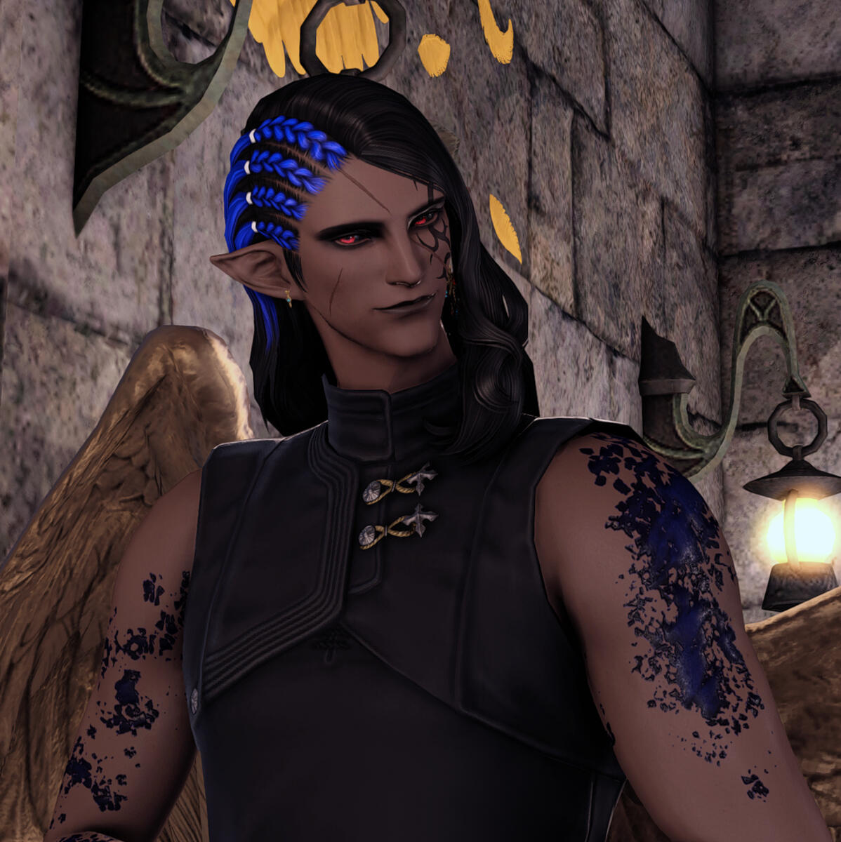 Born of the Dotharl, like many other of his tribespeople, he's extremely violent and revels in battle. This Xaela's original forename was "Elikai", and he wore it with pride, having lived 2 lives prior to rebirth as he is now. Deadly in melee combat, above all, he felled many warriors in the Naadam. His yol is known as "Zephyr".His way of life, however, changed drastically as merchants began to visit the Steppes. One thing he cares deeply for aside from war is his younger brother, whom he stood with through thick and thin. Elikai noticed a mentality that strayed from war in the case of his brother, and did not understand it at first.Though various things like books, and especially maps, were brought to their home by his brother from Reunion. These bits of learning material were gathered from areas all around the world, sold by merchants, and he finally began to understand the taste of adventure his brother sought. He, however, kept his tongue, while his brother often spoke up about wanting to go beyond the bounds of the tribe. While the brothers were very loyal to the ways of the Dotharl tribe and by no means afraid of battle, their minds often wandered. This was not well received by their kin.Their lives changed further one day when his brother was wounded heavily in battle. Elikai's brother was left for dead by the Dotharl, because he was assumed entirely deceased and ready for reincarnation. He sought to go take care of the corpse with admittedly a heavy heart... only to discover its absence.Ever the strong tracker, Elikai wandered for upwards of a few days before discovering his brother alive. He attempted to convince a return to the tribe, but his brother refused, citing that this was his chance to finally explore the world. Conflicted with his loyalty to the tribe, and with his connection to his brother, Elikai stewed on this for several hours before making his choice.He was to join his brother in wandering the world, abandoning his endlessly violent ways and redirecting them for a different purpose.He renamed himself to further leave his past behind and start anew, as this, he believed, was a new start even the end was not death. He deemed himself "Elias Cipher", with a love for codes, secrets, puzzles, and maps. Therefore, he decided, the surname fit him rather well.While his brother took the path of the merchant, he took the path of the warrior. Often, he is seen by his brother's side as a guard. Other times, he offers his services as a righteous mercenary (among other rather creative endeavors), caring little for gil and earning it for the sake of his little brother should he be called upon. His brother renamed himself "Athedima", though Elias often refers to him as "Athe". While Athe tends to avoid combat, and fights by the fist or bow, Elias fights by the sword.In current time, he is the "Blood Commander" of the City of Monsters. A high rank who offers aid in helping others to adapt as well.How was he turned into this... monstrosity? That's a tale for him to tell.