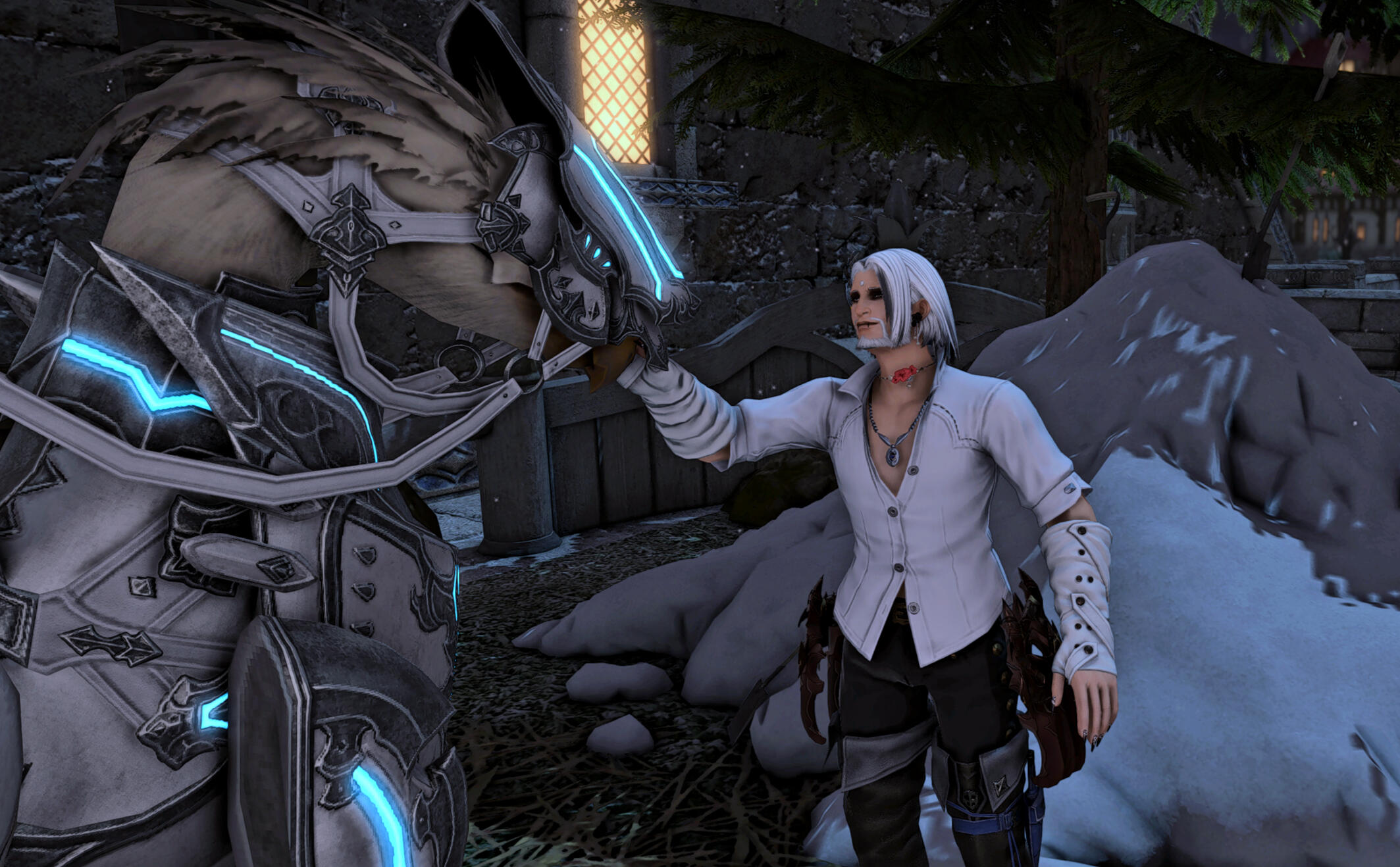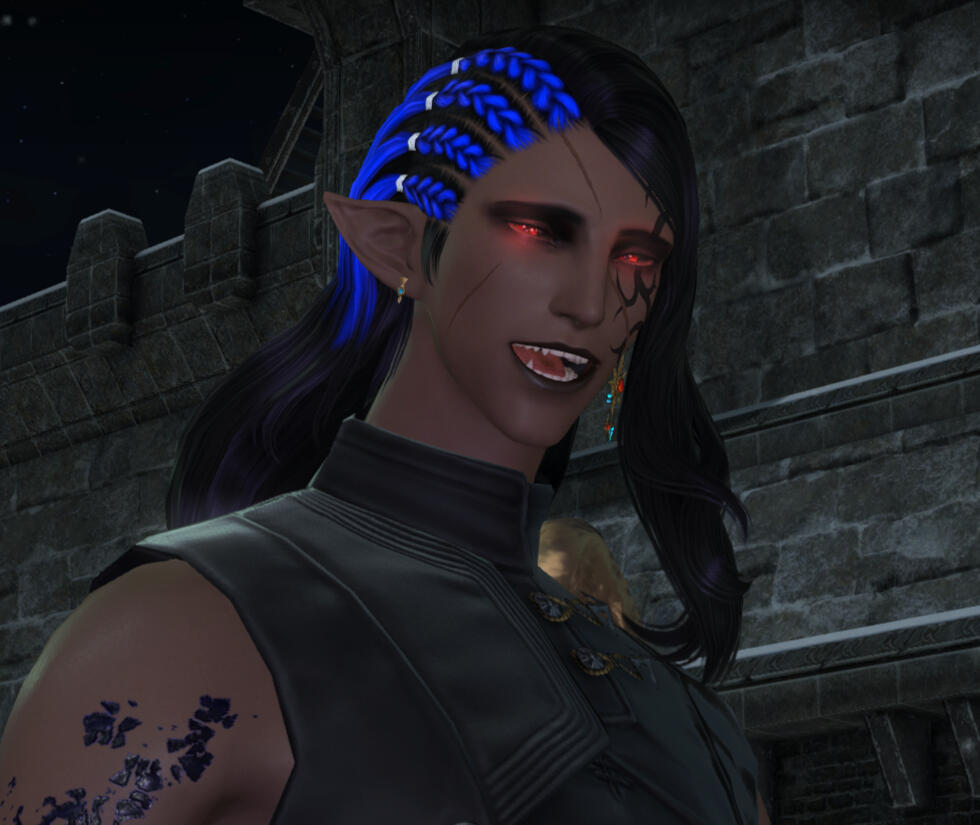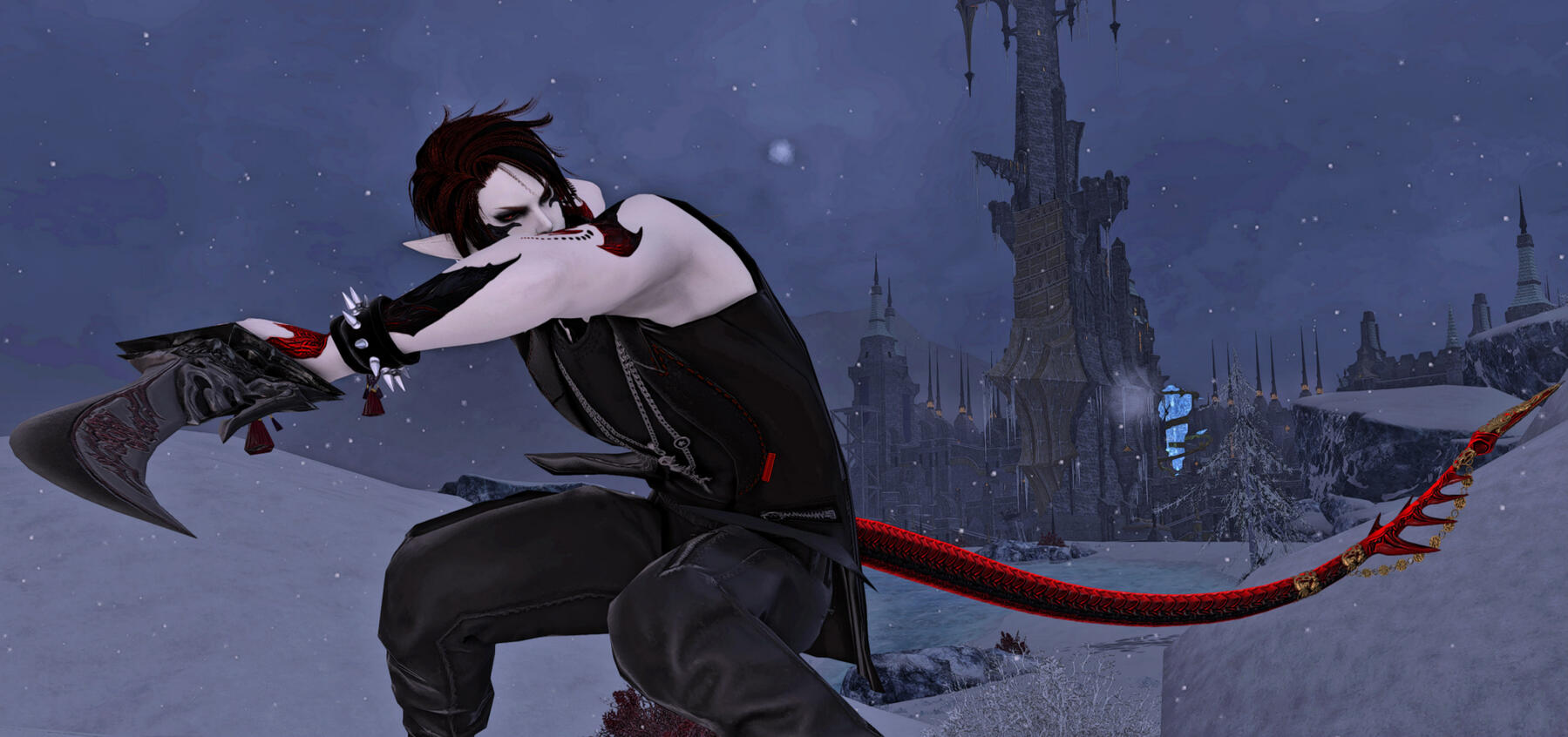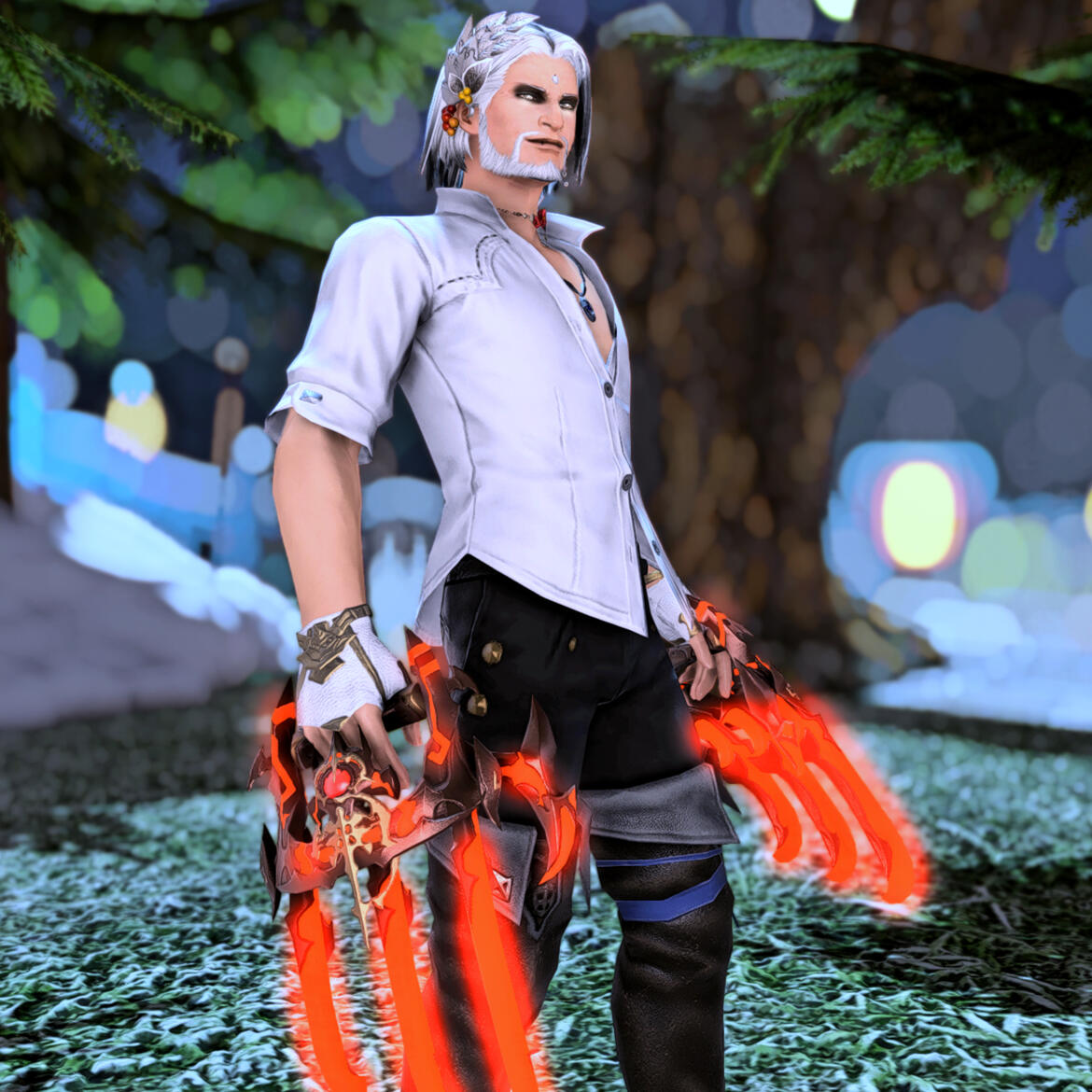 This nobleman has no idea who he truly is… not even that the House he thinks he originally is from isn’t truly his at all…He was born from an affair of a nobleman and woman of a different house. His mother’s name is Lady Charlotte de Glaceil. His father was in a different house, and upon learning House Glaceil’s secret, stole Kylian away and escaped to his original House.There was nothing Lady Charlotte could do, and the nobleman’s actual wife raised him as her own. It’s unknown if she knew the truth, but if she did, she never took it out on Kylian.That said… his father was never specifically cruel toward him despite the paranoia that his son would develop… odd ‘powers’. Heretical powers, even. Kylian was rather sheltered and his path was chosen at a young age.Therefore: Born a noble in Ishgard, Kylian inherited privilege from a young age. He was an extremely bright scholar, lost in research night and day, however didn't lose himself in the library.When he knew his father wouldn’t get in the way, he tossed on a heavy coat and went outside, reading by the sun or torchlight at night. The world was so beautiful, and he wanted to know more about it. Ishgard's isolation prevented any major exploration, however. This is something he resented, but kept quiet about so as to not get in trouble.He scorned the wealth imbalance, rather different from fellow noblemen in that respect. He often gave away a considerable amount of money, which led to scolding from his House. Despite just how dedicated to Halone he was, he was considered quite rebellious.After all: Halone is a mover of glaciers and goddess of war. Kylian was fascinated with the war of survival and nature. Predator and prey. Because of these passions, and his background in nobility, he was pressured into becoming a House Knight. He didn't really want to, but alas, to bring glory for his family, he had to.Secretly, his father figured this was the best path for his son to sate an assumed ‘hunting instinct’ given his true mother’s house.All of that said, his dedication to Halone, intelligence, and inner adoration for the 'hunt' led him to be an expert at his craft. Many dragons fell to his sword.He took to the books & pure spells far better than melee combat after Ishgard opened to the outside world. Given Ishgard is incredibly touchy about magic, he studied these arts in secret beforehand. All the while, in battle, his prey couldn't easily slip away from him. He was eerily exceptional on the hunt and kill.Still, the softer side of him often came out, and he tried helping those without as much wealth as him. Given his noble status, however, he was met with mixed results. Some folks appreciated his efforts, while others took it as a very mocking gesture.After his work in the settlement, he returned to guard Ishgard itself, where he joined a small company of knights to protect Ishgard.Though his father did try to keep a sharp watch on him, given House business, he couldn’t forever. Therefore, Kylian found a guardian of sorts with a Knight known as Ser Gerard.With his guardian and another Knight, they found their dedication to Ishgard and protection to it very powerful. This led them astray…An unnamed friar was desperate, his visions from Halone going sideways, something not evident enough until too late. He found an old Halonic pre-Ishguardian ritual that corrupted the knights, morphing their aether into...something else.Or so Kylian thought. This awoke something else within him. He never became what was known as a ‘Halonic Vampire’. Rather, the blood ritual that was meant to turn him into what Ser Gerard did awoke the side of him granted by his true mother.He was, in reality, a ‘Permafrost Vampire’.He was some kind of vampire… and Kylian embraced this. It enhanced his 'darker side', his love of the hunt, and uncanny excellence at it. Over the years, he built up very powerful, potent techniques to lure and kill prey in the dark of the night within a frigid forest.Despite the monster he'd become, Kylian only targeted those he deemed heretical or harmful to the people in general.Then, the Dragonsong war ended… and everything changed. Despite moving from nobility to a more 'noble profession' of protecting Ishgard, he ended up scorned horribly by the very people he'd been trying to help. Outsiders bled into the city as what he'd always wanted and dreamed of happened: Ishgard opened to the outside world. And yet, his life as he'd known it had ended. There was no love for him as an Ishgardian nobleman and knight.The events progressed, and he was often targeted, given his noble status, by folks who were not aware of his past deeds. Slowly, he grew very resentful & spiteful of the outside world coming in, of his dreams turning out to be a nightmare, and of all these changes happening right as he was making a name for himself. Therefore, he embraced the monster he'd become so long ago.